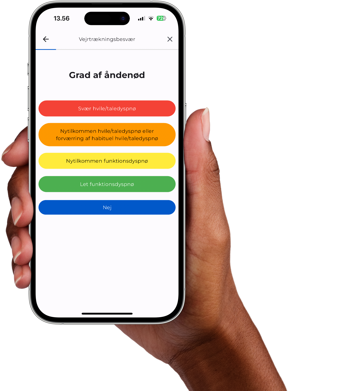 Åbn app'en, svar på spørgsmålene og få en triageringskategori på under 1 minut